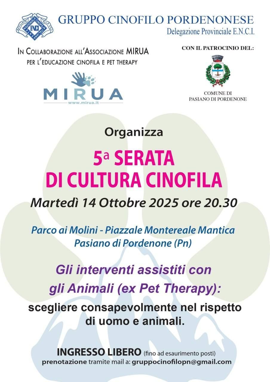 martedì 14 ottobre 2025 ore 20:30 c/o Parco ai Molini di Piazzale Montereale Mantica a Pasiano di Pordenone.